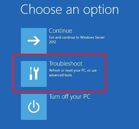 Choose "Troubleshoot" on the next screen.