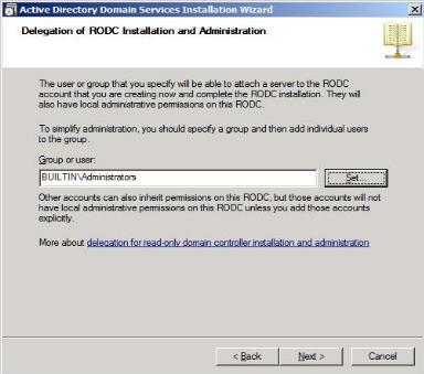 This ensures the RODC can receive replicated AD data from the writeable DCs, including DNS data (if selected as a DNS server also) from any DNS Application partitions from within the AD database. Next, run DCPromo from the command line.